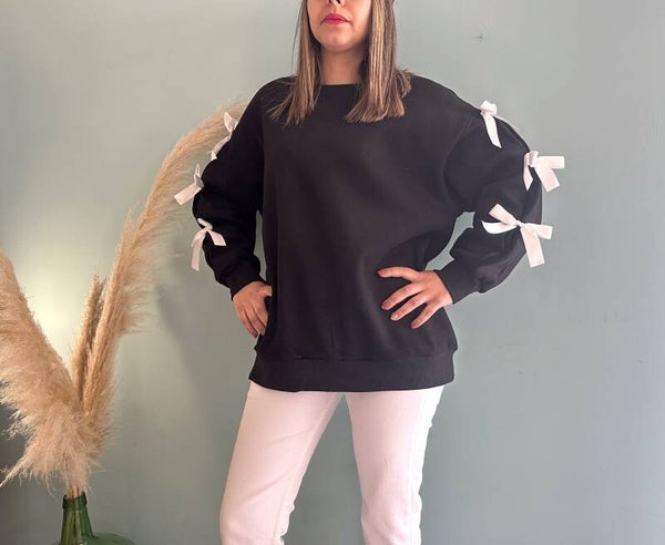 Pull Noir avec flocons sur les manches