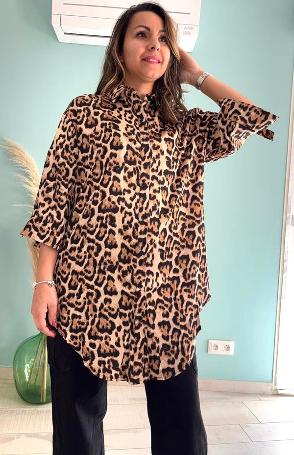 Chemise longue Léopard avec boutons